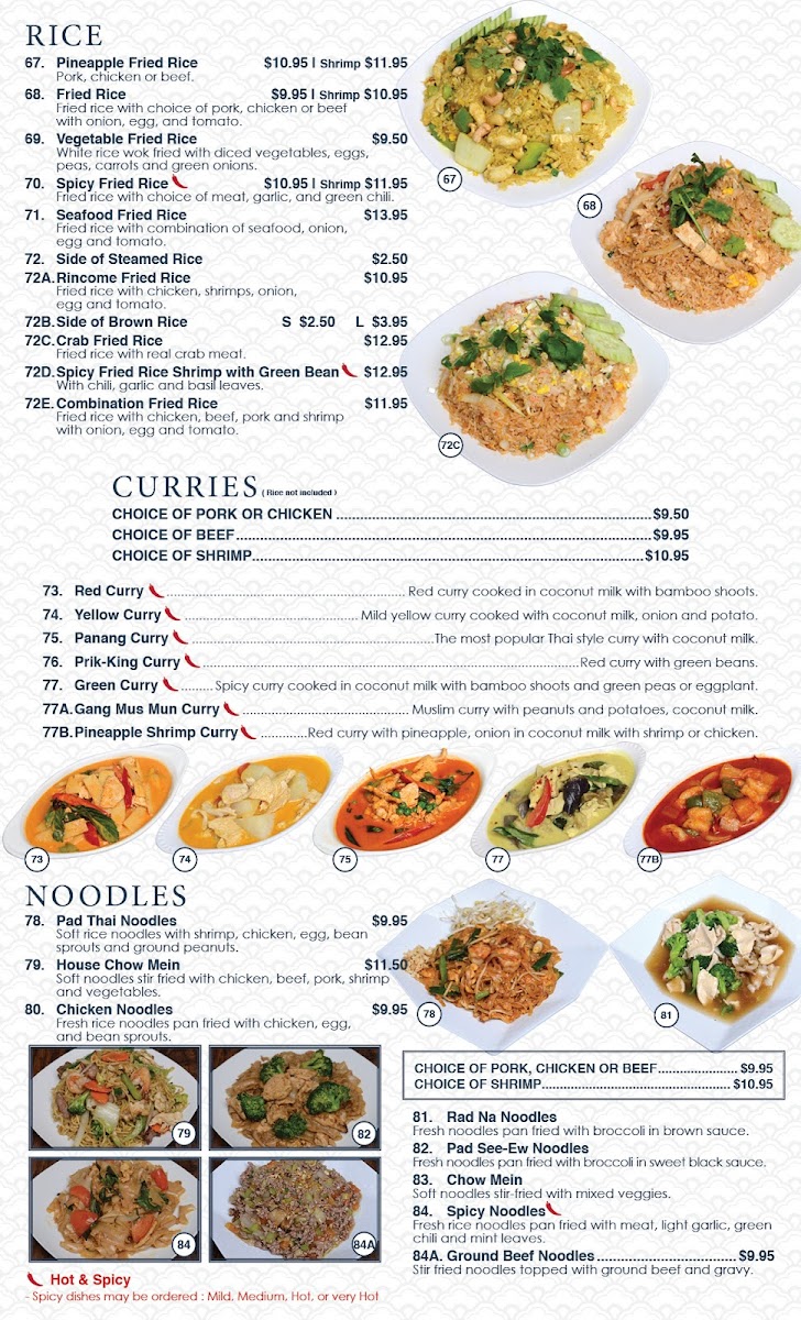 At Rincome, the focus is on traditional flavors and generous portions. The menu features a variety of beverages, including refreshing Thai Iced Tea and indulgent Thai Coffee Boba, both priced at just $4.95. For those not familiar with Thai cuisine, the standout dishes you must try include the flavorful Pad Thai and the well-seasoned Pad See Ew, praised by many customers for their authentic tastes and excellent preparation. Diners rave about the savory Green Papaya Salad and the aromatic Yellow Curry, which transports your taste buds straight to Thailand with each bite.
