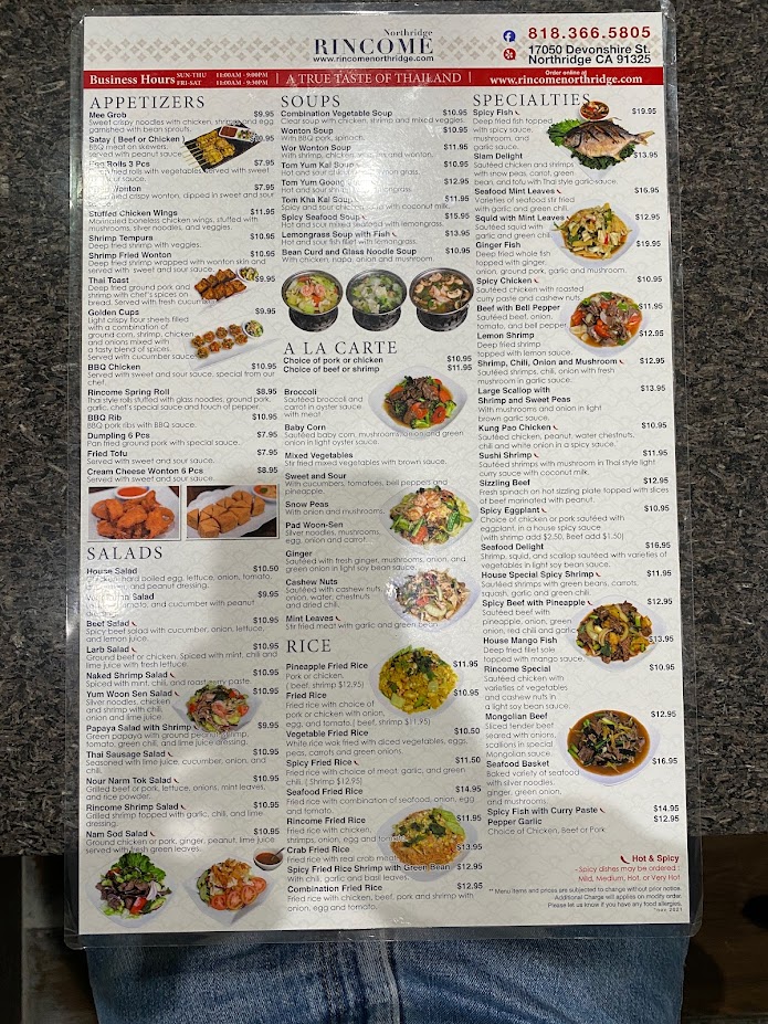 If you’re seeking an authentic taste of Thailand right in the heart of Northridge, look no further than Rincome Restaurant. This charming Thai eatery, located at 17050 Devonshire St, boasts a reputation not only for its delicious food but also for its inviting atmosphere and attentive service. Whether you’re a seasoned enthusiast of Thai cuisine or just starting to explore it, Rincome offers a delightful culinary journey that is sure to satisfy.